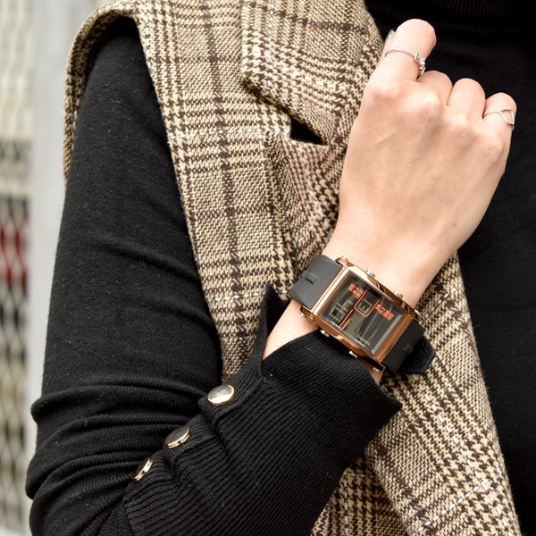 こだわり抜かれた曲線ケースにラバーベルトを組み合わせた超クールな腕時計です。カジュアルなシーンはもちろん、ビジネスシーンでも活躍してくれます。ボーイズサイズは女性にも人気です!