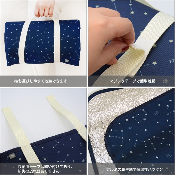 ![]() 収納できて便利なピクニックシート。2~3人が座れるサイズです。 収納用のテープはシートに縫い付けてあるので 紛失することなくお使い頂けます。 裏面の生地はアルミで保温性バツグンです。 ![]() ![]() |