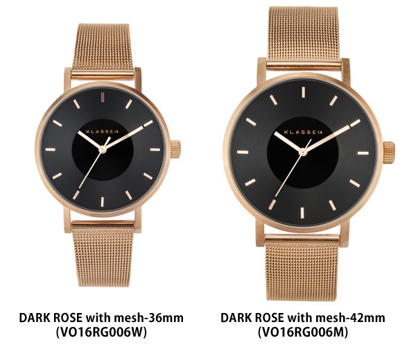 KLASSE14は、デザイナー、アーティスト、特に個性的な人または時に純粋に興味深い人によってデザインと時計のコラボとなり誕生しました。 デザイナーのマリオは空を自由に飛びまわる雄大なイーグルこそが自由のシンボルだと信じている。マリオがこの時計をデザインし始めたときに、この高貴な動物をコンセプトの中心に掲げたかった。 それゆえに、「VOLARE」の針は、飛行中の羽のようにわずかに上向きに湾曲。文字盤はデザインのコンセプト通り、どこからも光を捉えるべくコニック型になっている。 Volare DARK ROSEモデルは、エレガントなローズゴールドとミステリアスなブラックの組み合わせにより、女性の美しさとカリスマ的な魅力を象徴したコレクションです。
