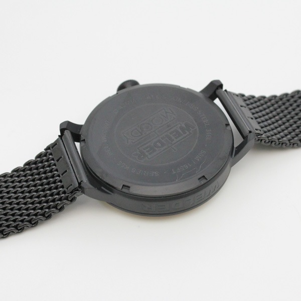 WELDER/ウェルダーの中でも一番の注目モデルMOODY(ムーディー)。 光の角度に応じて色を変える偏光ガラスのフォトクロミックグラスを採用した腕時計。 プレーンなダイヤルのデザインは、6時と12時の2つの大きなアラビア数字が配置。 ケースの左側にあるクラウンは、Welderの代表的デザイン要素であり、コレクションの特徴を強調しています。竜頭にはWELDERのロゴが主張。 メッシュベルトでスポーティーエレガンスを表現しています。