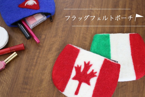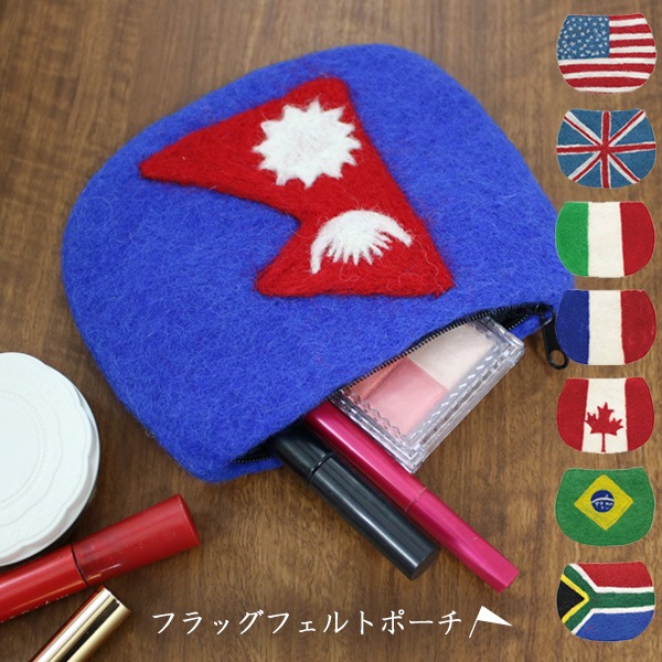 フラッグフェルトポーチ 国旗 小物入れ コスメ ウール アメリカ イギリス カナダ フランス イタリア ブラジル 南アフリカ おもしろ雑貨 プレゼント ギフト メール便OK