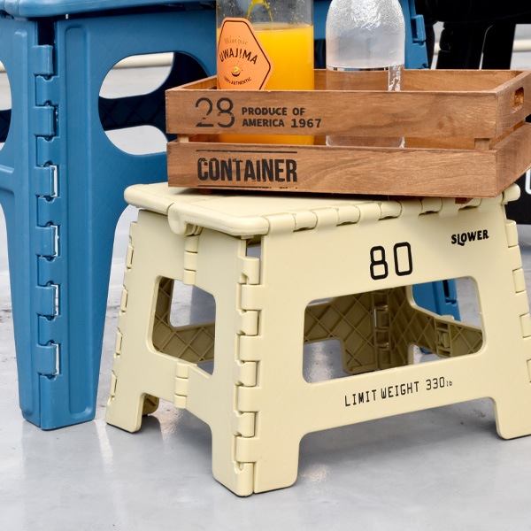 屋内外問わず使用できる耐荷重150kgのステップ。アウトドアでの椅子としてはもちろん、子供部屋、室内のインテリアとしても便利なアイテムです。折り畳めるので、使用しない時は隙間に収納することができ、持ち運びもスムーズです。ぜひシリーズで揃えてお楽しみください!