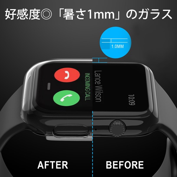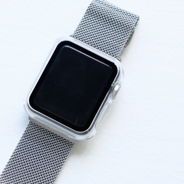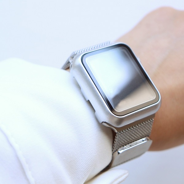 大切なアップルウォッチを衝撃や傷から守るために欠かせないアクセサリー。薄型(厚さ1mm)の強化ガラス・耐久性のあるポリカーボネートを使用したアップルウォッチの保護ケースです。前面・側面をしっかりと保護し、装着も簡単でベルトを付けた状態でおこなえます。ケースを装着しても感度は良好で、スムーズな操作ができます。もちろん、充電やボタン操作も可能です。