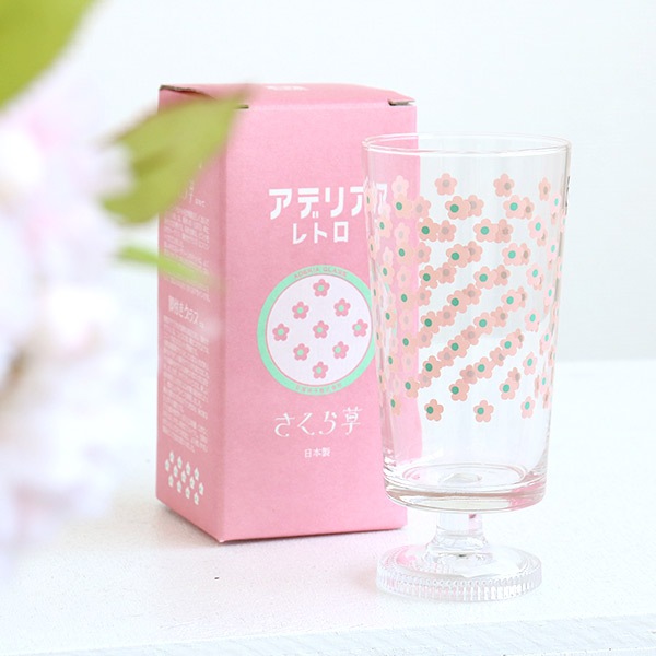 昭和アデリアの代表的な商品である「脚付きグラス」は、コップに短い脚をつけたような、ユニークなシルエットが特徴です。当時は家庭用グラスとして大変な人気でした。アデリアレトロでは、新しい成形技術と人の手による作業の組合せによって、懐かしいデザインを再現しました。脚の位置のわずかなバラつきなど、味のある仕上がりも健在です。さらに飲み物がたっぷり入る容量・口が広くお手入れしやすい形状にリメイクし、当時のかわいらしさはそのままに、より使いやすい商品として生まれ変わりました。お家時間に自家製ドリンクやパフェを作るのも◎プレゼントにも最適です。