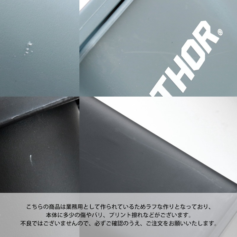 「THOR」は、業務用を中心としたプラスチック製品を生産しているTRUST(トラスト)社のオリジナルブランドです。カートやコンテナ、ゴミバケツなどが有名で、耐久性が高く優れたデザインは、世界中のプロフェッショナルに愛されています。