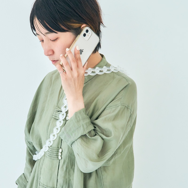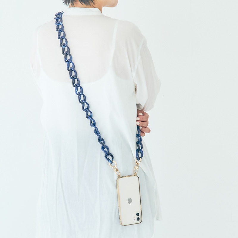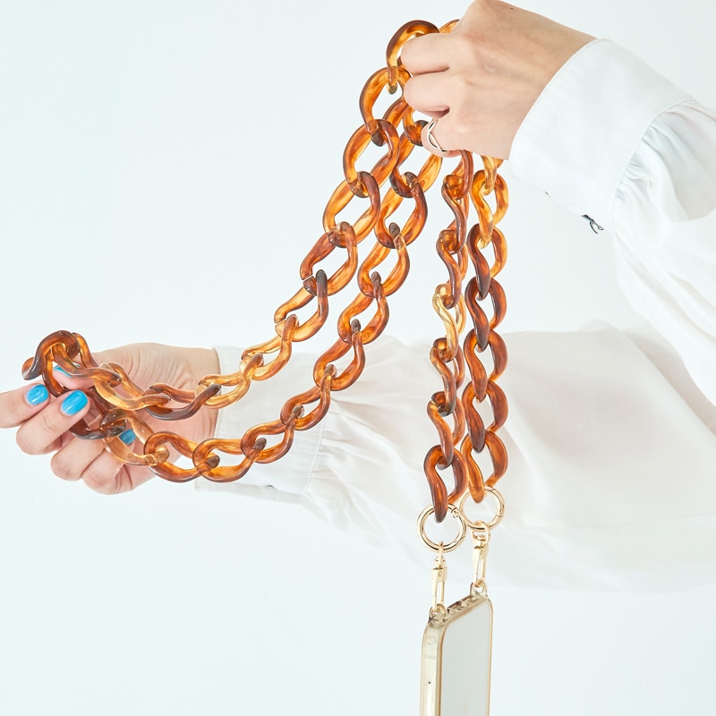 ファッションのワンポイントになるスマホのチェーンストラップ。簡単につけ外しができるので、気分やファッションに合わせて付け替えを楽しむことができます。バッグが小さい時や、ポケットにスマホが入らない時に◎ショルダーにしておけば、鞄の中でスマホが迷子になることもなく、落下防止にもなります。ストラップは少し長めの約120cmで、アウターの上からでもつけやすいです。別売りのクリアケースと組み合わせれば、自分だけのスマホケースとしてアレンジできます。ストラップは、サコッシュやポシェットのショルダーとして使ってもOKです。