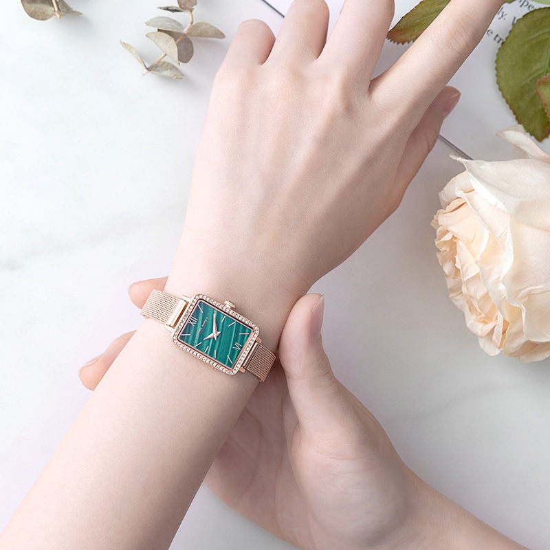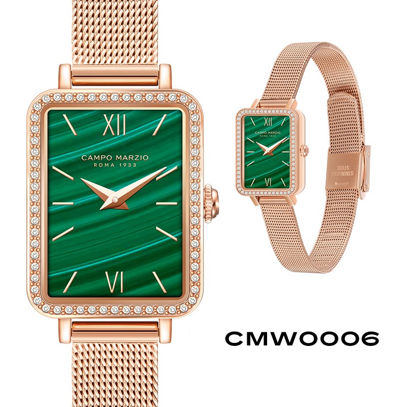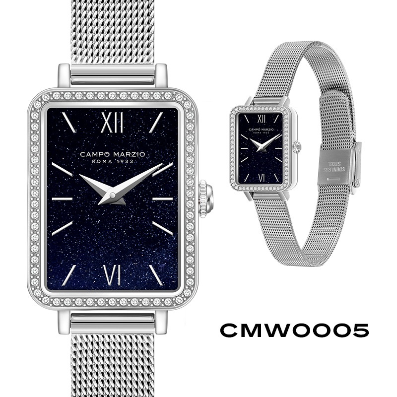 ステーショナリーから革小物まで幅広く展開中のイタリアブランドのCAMPO MARZIOのWATCHシリーズが日本発上陸。カンポ マルツィオの腕時計は、独自の世界観を時計に落とし込んだモデルが多く、ON/OFF様々なシーンで使いやすく日常を華やかにしてくれます。「SICILY/シシリー(シチリア)」は、ベゼルに沿って埋めつくされた煌びやかなクリスタルが華やかなケースに、ローマ数字を施したインデックスがクラシカルな印象ながらメッシュベルトが女性らしさを引き立てます。普段使いはもちろん、結婚式やパーティーなどドレスウォッチとしても着用できます。
