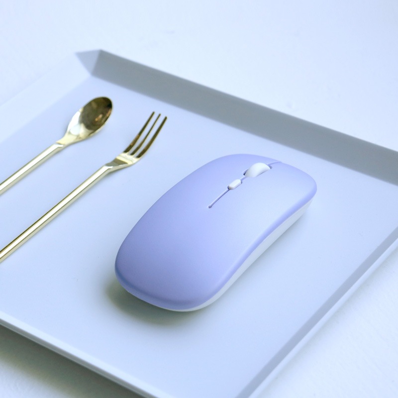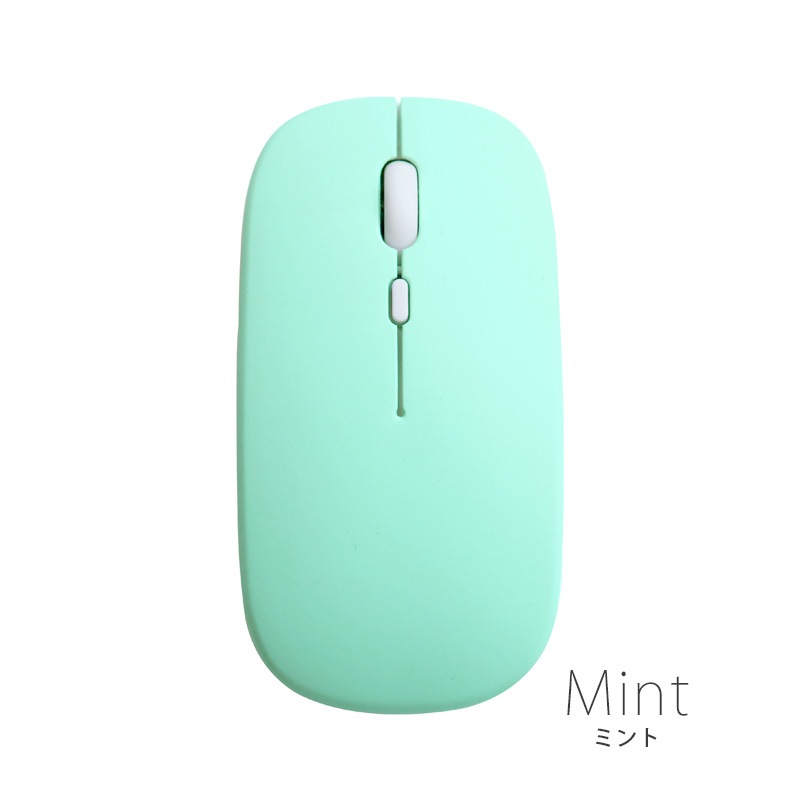 "Crisp and light to the touch, the Macaron Mouse is a wireless mouse in calming colors that can lift your spirits. Simply insert the receiver into your computer's USB port for an easy connection. The receiver can also be stored inside the mouse body. It takes about 4 hours to charge and provides about 70 hours of continuous use. The slim design eliminates worries about tangled or broken cables, making it ideal for travel. It also features a silent switch that eliminates the clicking sound, so it's perfect for use in cafes, libraries, or for telework."