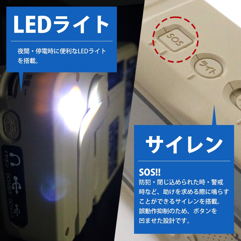 ■LEDライト:夜間・停電時に便利なLEDライトを搭載。