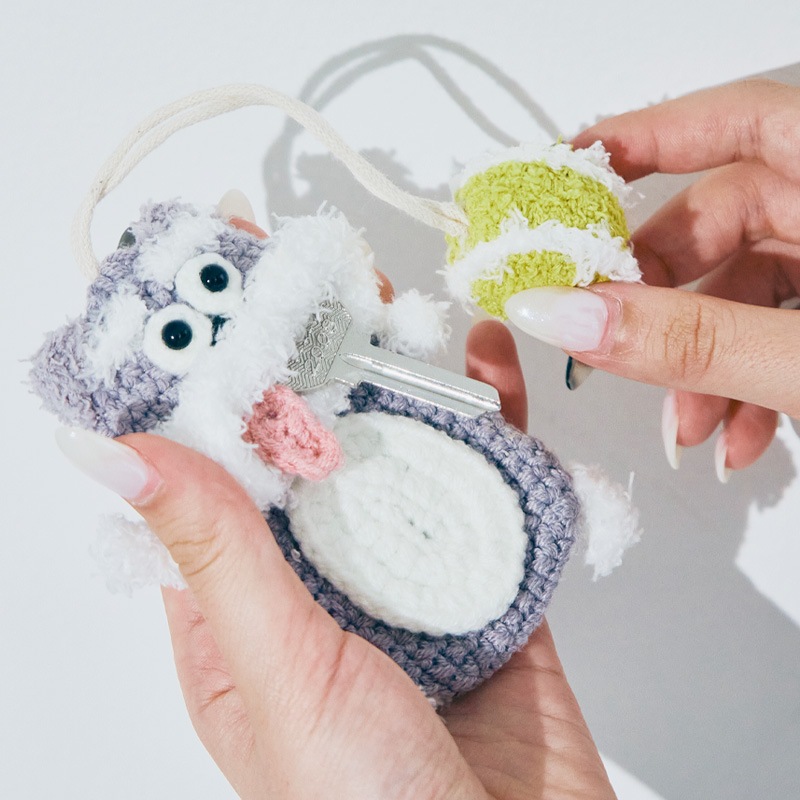 マカロニエッジの人気シリーズ"毛糸のマスコット"キーケースよりかわいさ満点のうさぎが登場!愛嬌のある独特なウサギたちが毛糸で表現されています。紐に鍵を付けてキャラクターの中へ収納する仕様で、口から鍵を出し入れする動作は思わずフフッと笑ってしまいそうになる、なんとも言えない可愛さです。毛糸のマスコットシリーズは手作りのため1点1点表情が異なり、自分だけのモノとして愛着を持って使えるアイテムです。友人へのちょっとしたプレゼントにもおすすめです。