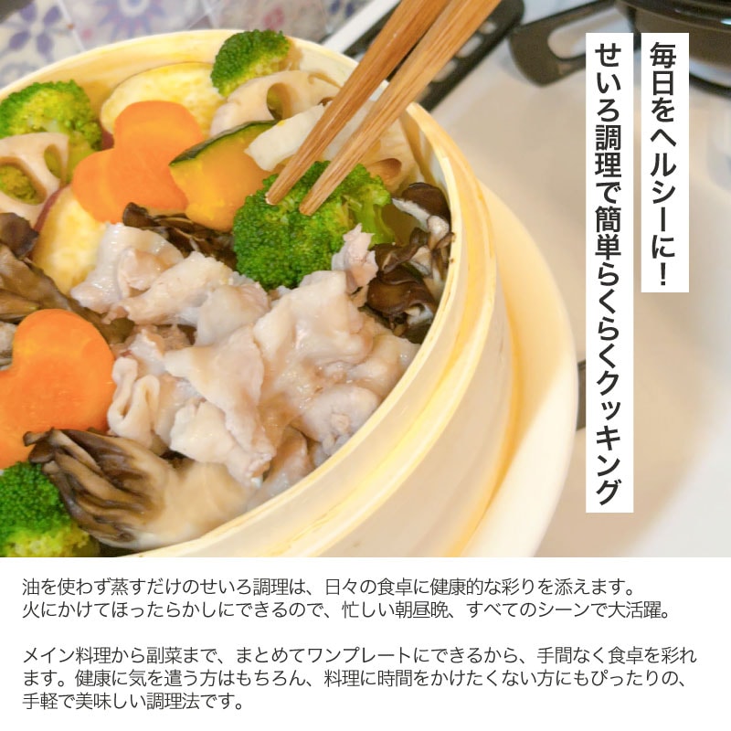 | 素材 | せいろ:竹、鍋本体・フタ:ほうろう用銅板、フタのつまみ:フェノール樹脂 |