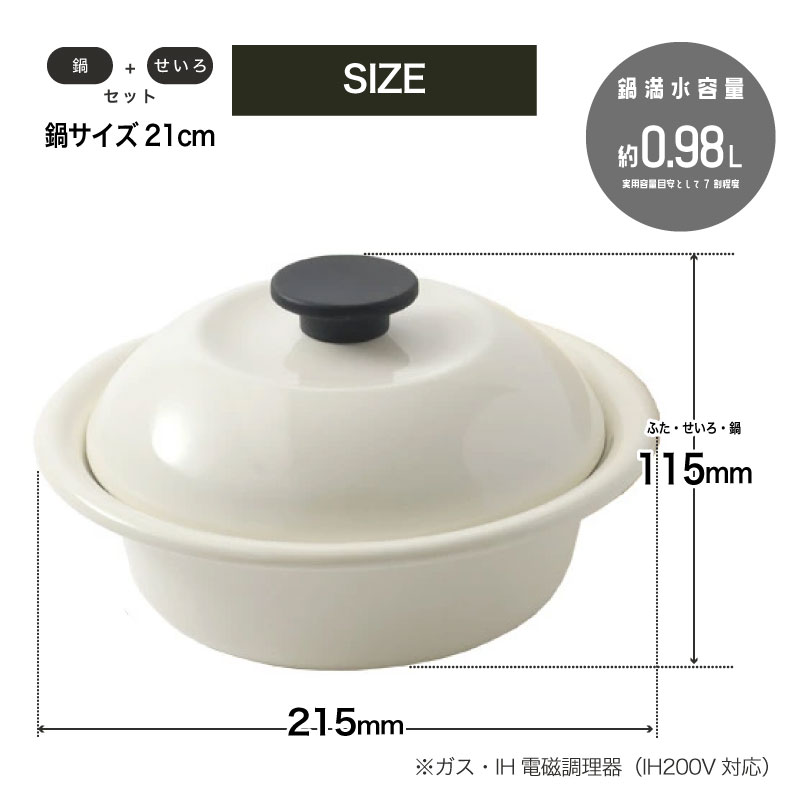| サイズ | 鍋(本体):約215x115mm、せいろ:約177x68mm |