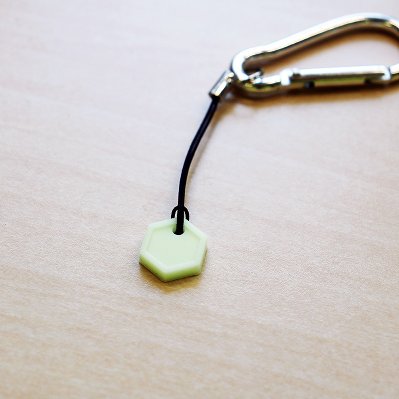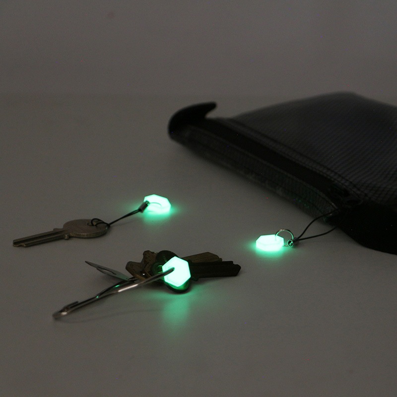 太陽光、スマートフォンのライト等様々な光源から蓄光することができる優れたミニマーカー。小さいながらも高輝度の蓄光で暗い状況でも素早く認識することができます。アメリカの政府機関と取引を行うために必要なCAGE CODEを取得したMADE IN USA。素材は耐熱シリコーンゴムを採用。一般的に流通している蓄光材と比べると驚くほど明るく、長くても12時間程度の発光時間が多い中、このアイテムは最大24時間発光し続けることができます。付属のストラップを利用してキーリングやリュックなどに取り付けておけば、暗い場所でも探す手間がなくなり、すぐに見つけられるようになります。アウトドアギアの目印としてはもちろん、USBドライブや鞄のジッパーなど、日常生活の様々なシーンで活躍する、高い実用性を誇るアイテムです。