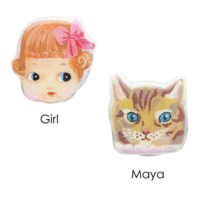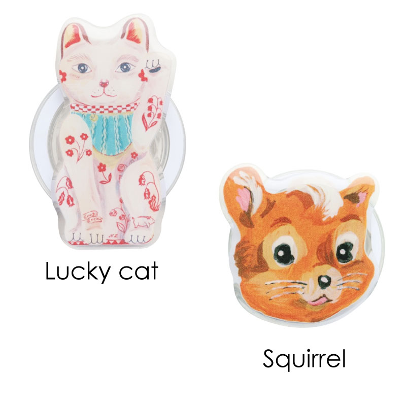 | サイズ | Black cat:約57×69mm Rabbit:約52×78mm Pig:約55×58mm Mouse:約67×58mm Girl:約60×60mm Maya:約55×58mm Lucky cat:約43×80mm Squirrel:約56×55mm |