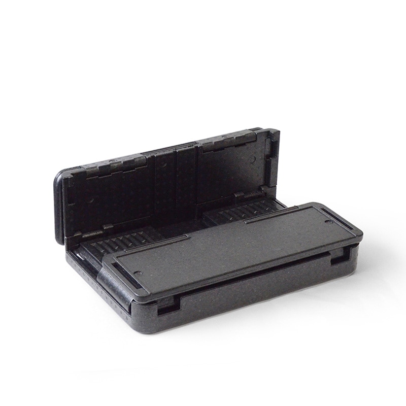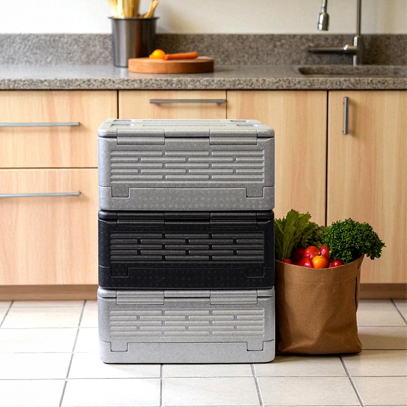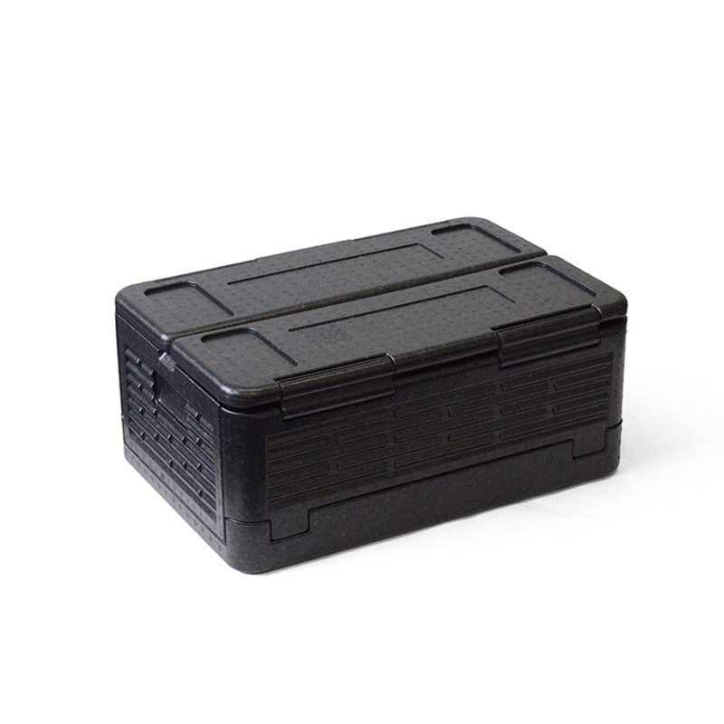 発泡スチロール製の折りたたみボックスです。発泡スチロール素材のため軽量で、重たい荷物になりがちなアウトドアシーンでも、女性でも片手で軽々と持ち運べ、扱いやすいのが特長です。保冷剤と併用すれば、BBQ、釣り、ピクニック、スポーツ観戦などに最適な軽量クーラーボックスとして活躍します。また、日常生活においても多目的にご利用いただけます。スーパーでの買い出しの際、車に積んでおけば、生鮮食材や冷凍食品を鮮度を保ったままお持ち帰りいただけます。ご自宅での食材の保管や、こどもおもちゃの整理など、マルチな収納ボックスとしても便利です。使用しない時は折りたたんで収納できるため、車内や自宅でも場所を取らずに保管が可能です。
