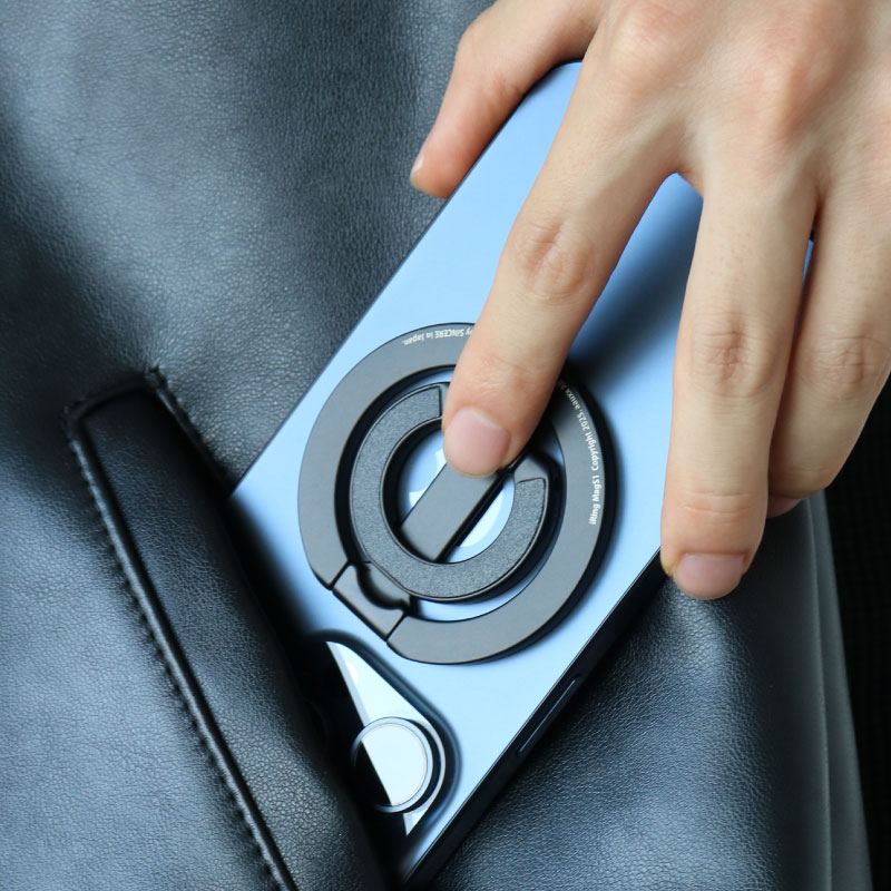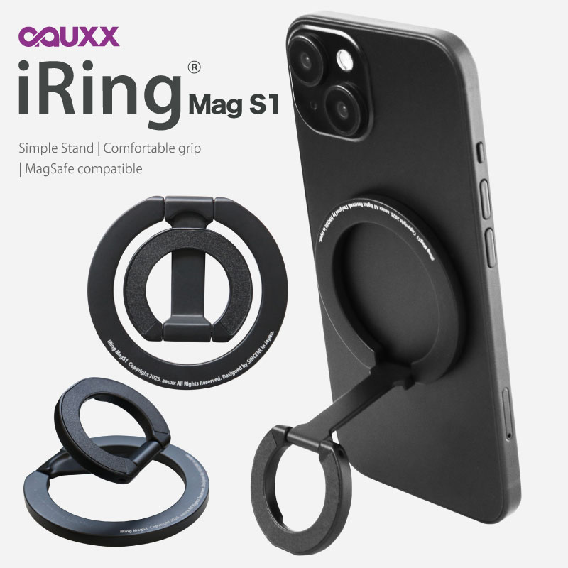 スマホリングの王道iRingシリーズから、スタンド機能を追求した「S1」が登場しました。“S”はStandのしるし。縦でも横でも自立する安定感と、マグネットの便利さをギュッと一つにした、実用性バツグンのモデルです。一番のポイントは、そのマルチなスタンド機能!動画を観る時は横向き、SNSをチェックする時は縦向きと、シーンに合わせて自由自在。さらに両面マグネット内蔵なので、冷蔵庫やジムのマシンなど、スチール面にピタッと貼り付けてハンズフリーで楽しむこともできちゃいます。指を通せば落下防止のリングとして、パカッと開けばフックに掛けて使うこともできる優れもの。マグネット式だからiPhoneのMagSafeにそのまま吸着し、充電したい時はサッと外せる手軽さが嬉しいですよね。付属のパーツを使えば全機種で使えるのも高ポイント!厚さわずか4mmのスリムなボディと、指紋が目立ちにくい上品なマット質感は、大人のガジェットスタイルにぴったり。「動画をよく見る」という方への実用的なプレゼントとしても間違いなしのアイテムです。