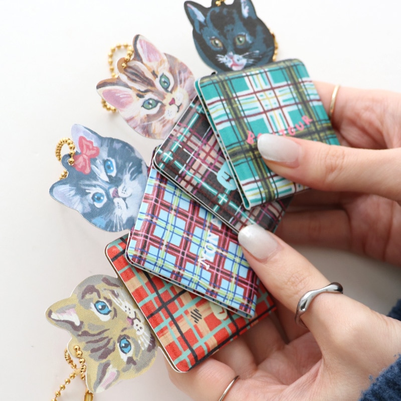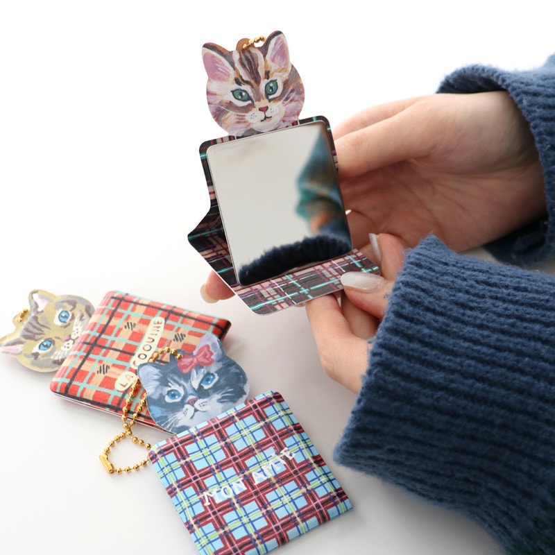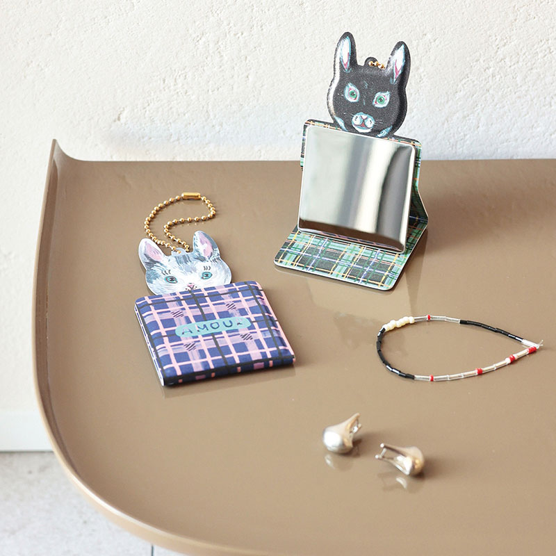 "ナタリーレテ"が描く、個性的でキュートなネコたちが小さなチャームになりました!お出かけバッグやポーチに付けて持ち歩けるこのチャーム、実はパカッと開くとミニミラーが登場。お出かけ先でサッと身だしなみを確認できるだけでなく、そのままデスクに立ててスタンドミラーとしても使える優れものです。ミラーは「割れない素材」を使用しているので、バッグの中でぶつかっても安心。ナタリー・レテらしい絶妙な表情のネコたちと一緒に歩けば、いつものお出かけがもっと楽しくなりそうです。可愛さだけでなく、実用性もしっかり兼ね備えた優秀アイテム。自分用にはもちろん、猫好きな友人へのプチギフトにもぴったりです。