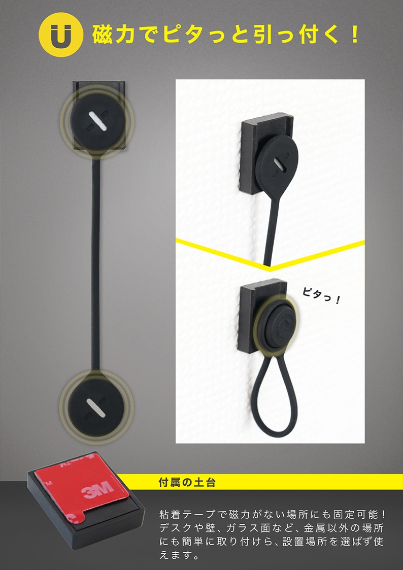 「デスクの上がケーブルでごちゃごちゃ…」「カバンの中でイヤホンが絡まる!」そんな日常の小さなストレスを、磁石の力でスマートに解決してくれるマルチホルダーが登場しました。一番のポイントは、ぐーんと伸びるシリコン素材と強力なマグネット。充電ケーブルや有線イヤホンはもちろん、ドライヤーやヘアアイロンといった太めのコードもしっかりまとめられます。さらに、付属の専用スタンドをデスクや壁にペタッと貼れば、定位置にピタッと吸着。まるでケーブルが宙に浮いているようなスッキリとした空間に、思わずフフッと気分が上がります。水に強いシリコン製なので、キッチンでキッチンバサミを吊るしたり、お風呂場で掃除グッズを整理したりと、家中どこでも大活躍。鍵に付けてキーホルダーにすれば、帰宅後に玄関のドアにピタッと貼り付けて「鍵どこだっけ?」を防ぐこともできちゃいます。スタイリッシュな5個セットなので、自分用にはもちろん、「いつもデスク周りをきれいにしたい!」というこだわり派の方へのプチギフトにもおすすめです。磁石のように人を惹きつける、スマートな暮らしを始めてみませんか?