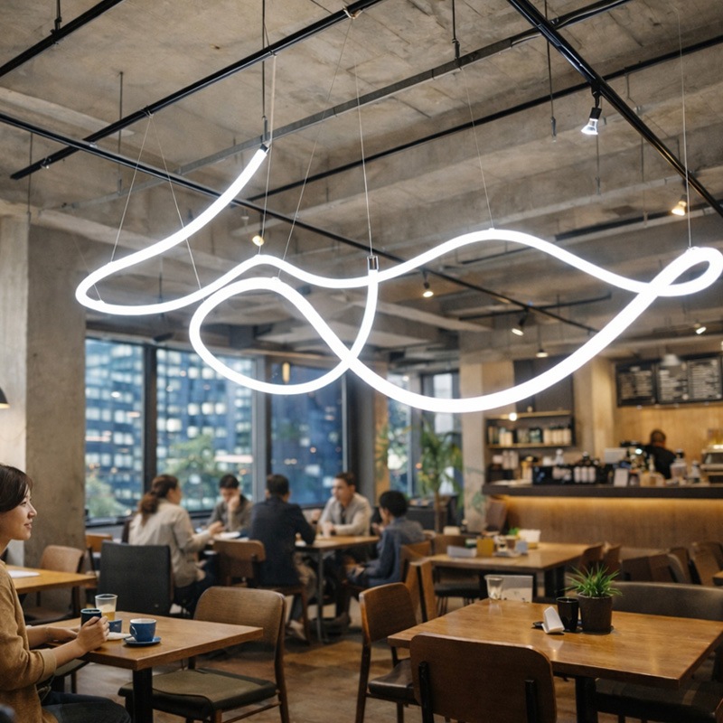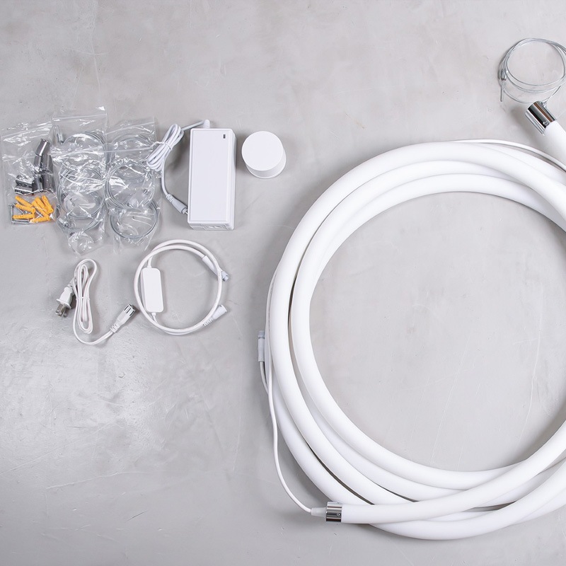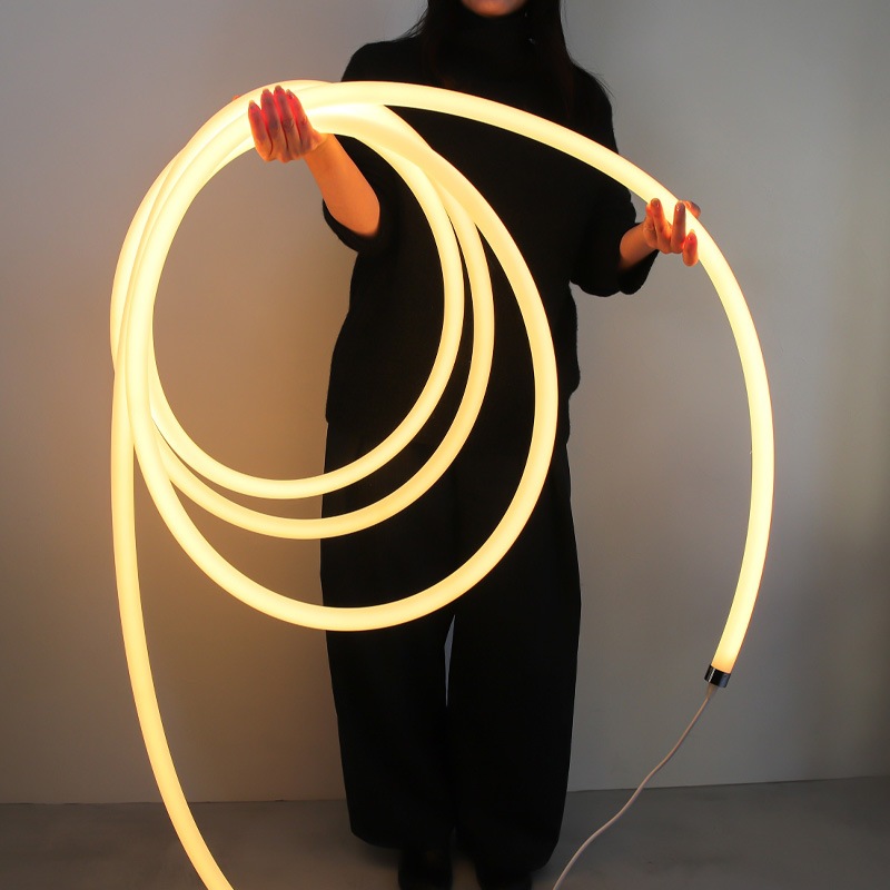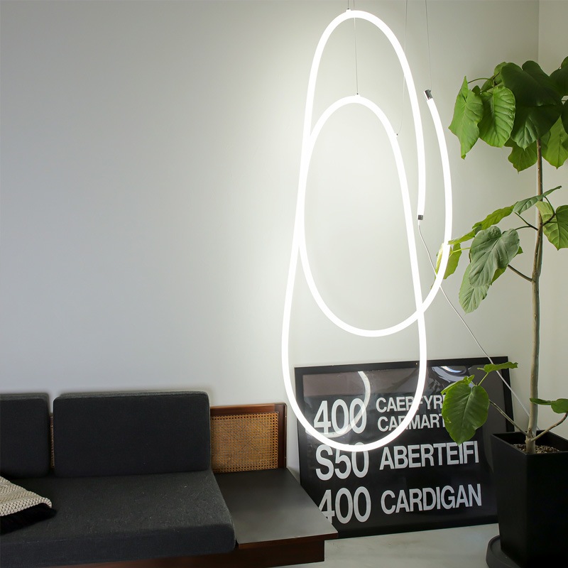 360°全周にムラなく光が広がる、新感覚のシリコンチューブライトが登場しました!上質でなめらかな光のラインが、いつものお部屋をカフェやギャラリーのような洗練された空間へと塗り替えてくれます。一番の魅力は、付属のワイヤーパーツを使って天井から吊り下げられること。ゆったりとした曲線を描いたり、高低差をつけて立体的に配置したりと、空間を自由自在にデザインできます。光の粒が目立たない上品な輝きは、視線の流れにリズムを生み出し、奥行きのあるライティングを叶えてくれます。操作はシンプルで直感的に使える円形リモコンにお任せ。温もりのある電球色から、キリッとした昼光色まで明るさと色温度を細かく調整できるので、気分やインテリアに合わせた演出が可能です。無線式のリモコンなので、向きを気にせずどこからでもスムーズに操作できるのも嬉しいポイント。お部屋の雰囲気をガラリと変えたい方はもちろん、「光で空間をアートのように楽しみたい」という方への特別なギフトにもおすすめです。
