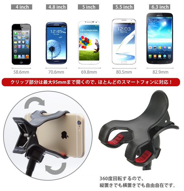 ![]() 曲げたり伸ばしたり自由に変形できるフレキシブルタイプのスタンド。 クリップは厚さ40mmまでのラックや天板に取り付けができます。 スマホを挟むクランプ部分も最大95mmでほとんどのスマートフォンに対応。 キッチンでレシピを見ながら…車載用としてナビも好きな位置で… 1つあると便利なアイテムです! ![]() ![]()