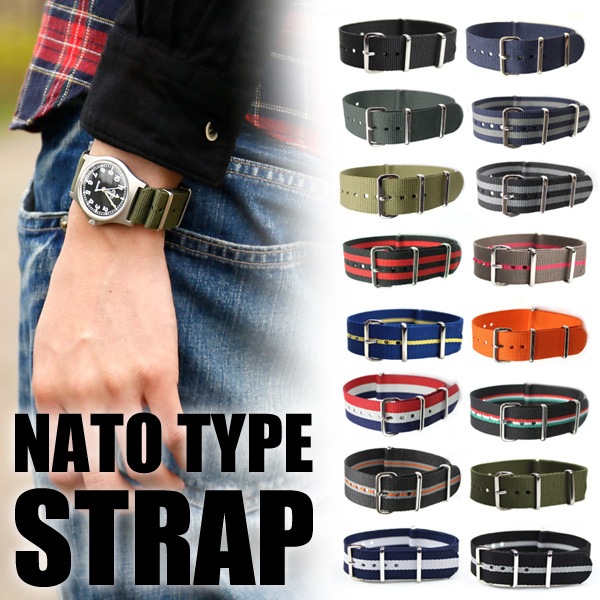 腕時計 替えベルト 替えバンド NATOタイプストラップ ナイロン 耐水 NATO TYPE STRAP 全16色 18mm/20mm/22mm 【メール便OK】