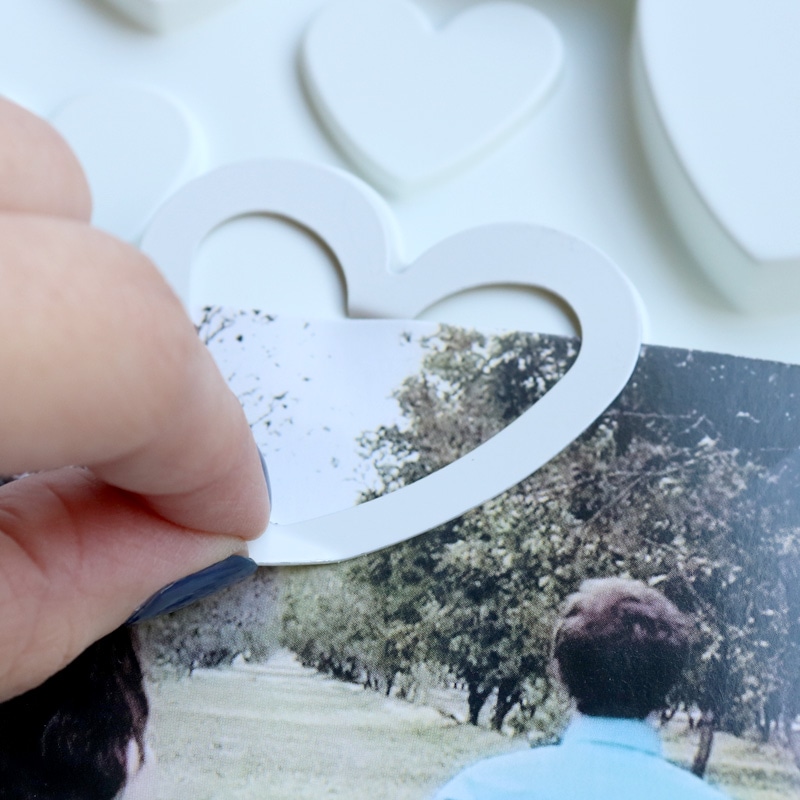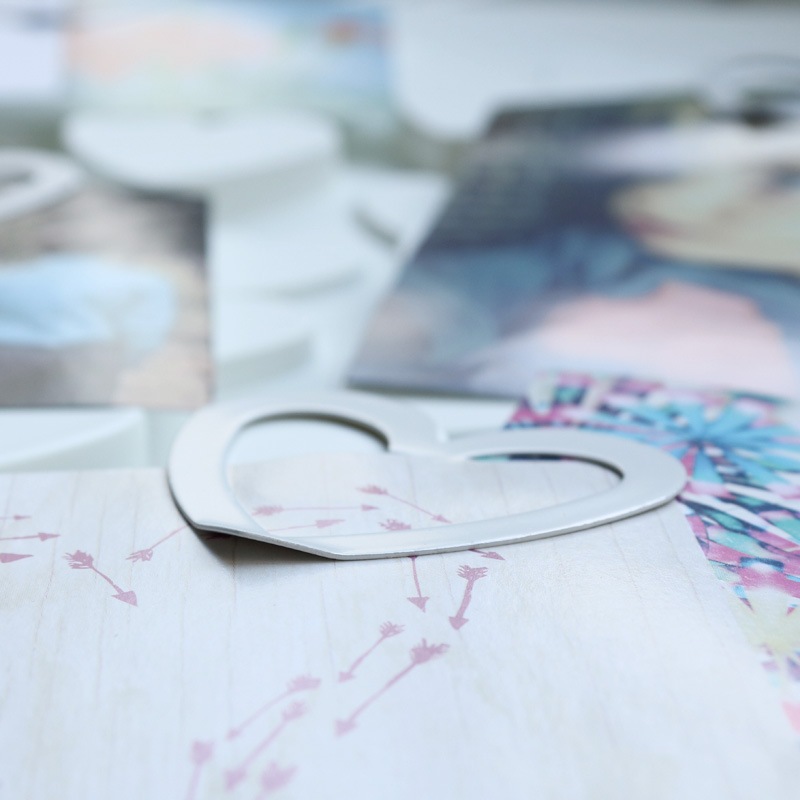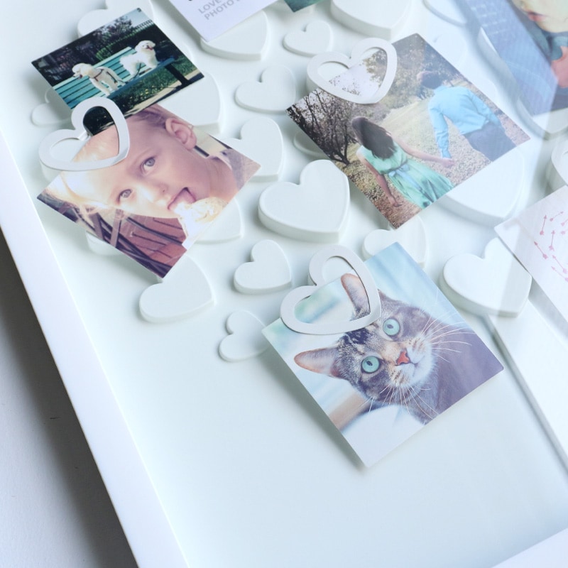 ハートの部分に写真を挿んでオリジナリティー溢れるディスプレイができる愛の溢れるフォトフレームです。クリップは全部で6個。お気に入りの写真はもちろんのこと、ポストカードや雑誌の切り抜き、カードなどを挿んでお楽しみいただけます。ブライダルや出産のお祝いなど、ギフトにもおすすめです。