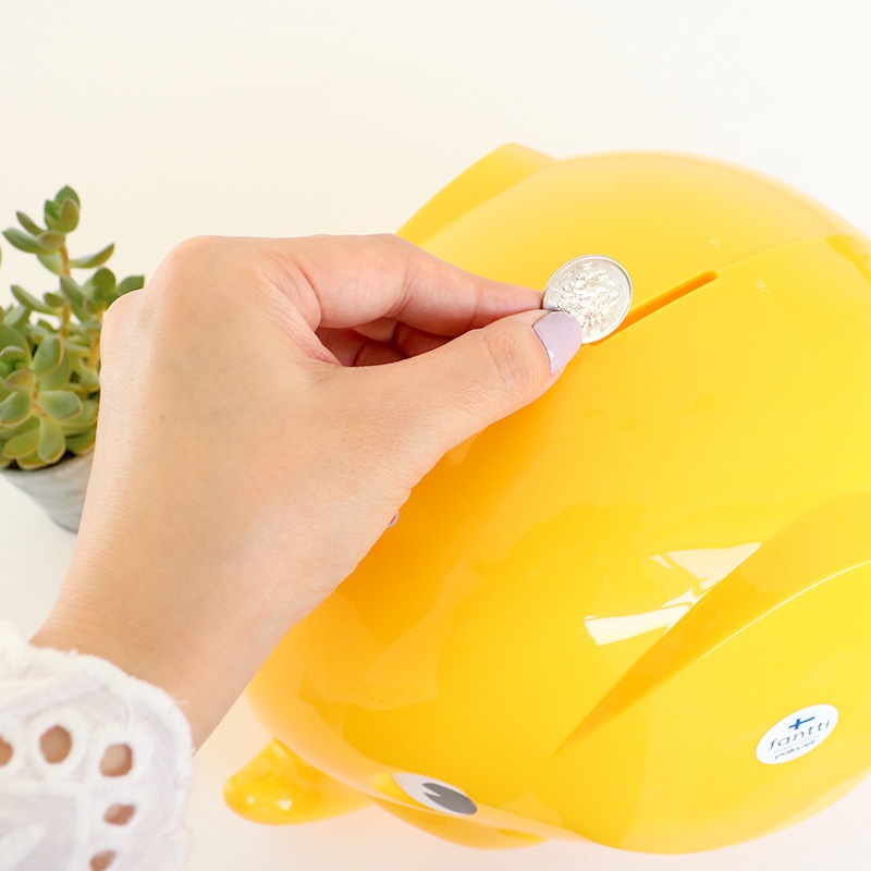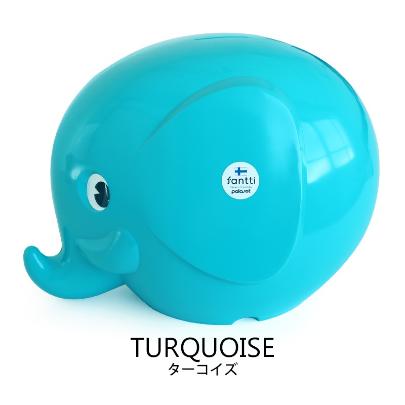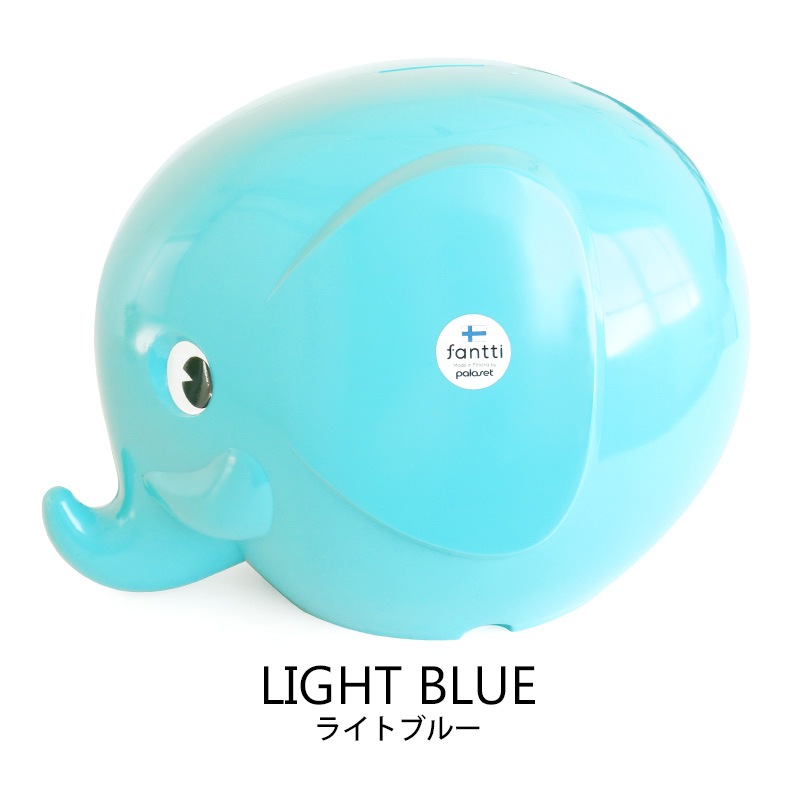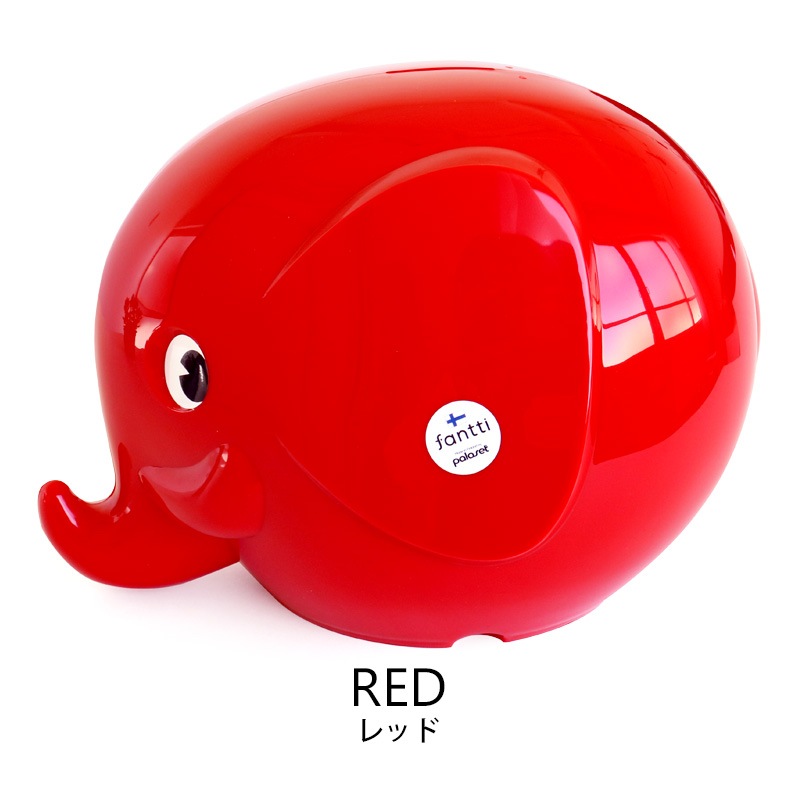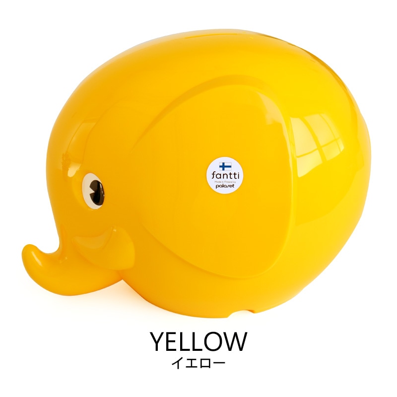 愛らしいゾウのフォルムが人気のFantti(ファンティ)の貯金箱。1970年代フィンランドの銀行でノベルティとして配ったことが始まりです。当時の愛称であるNorsu(ノルス)は、フィンランド語でゾウを意味し、北欧で幸運を呼ぶ象徴ともされています。Lサイズは両手で抱えるほどの大きさです。Sサイズは手のひらに収まる可愛らしい大きさです。底面にはお金の取り出し口があり、付属の鍵で開けることができます。ビビッドな色使い、丸みを帯びたキュートな形、インパクトのある大きなサイズ感はお部屋のインテリアとしてもおすすめです。