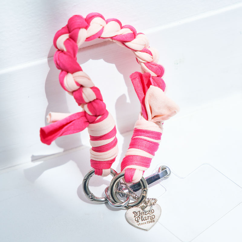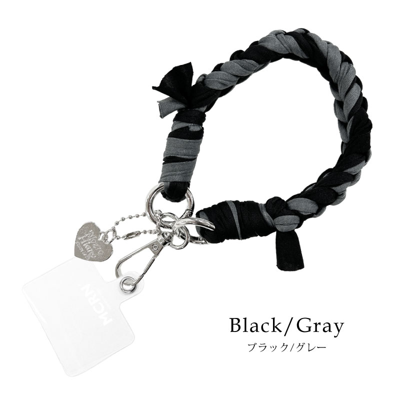 スタイリッシュなバイカラー編み込みが目を引く、ショートストラップが新登場。丈夫でありながら洗練されたデザインに仕上げました。装着は付属のクリアタグをスマホケースに挟むだけの簡単仕様。機種を選ばず、手軽にストラップ付きスマホケースに変身できます!手首に心地よくフィットする短すぎないサイズ感で、男性でも使いやすいのが魅力。編み込み部分の程よい太さが、安定感のある持ち心地を提供し、スマホの落下防止にも役立ちます。シンプルながらも存在感のあるバイカラーデザインは、どんなスタイルにもマッチ。ハートのチャーム付きなのもカワイイ!カップルや友人、家族とお揃いで持つのもおすすめです。